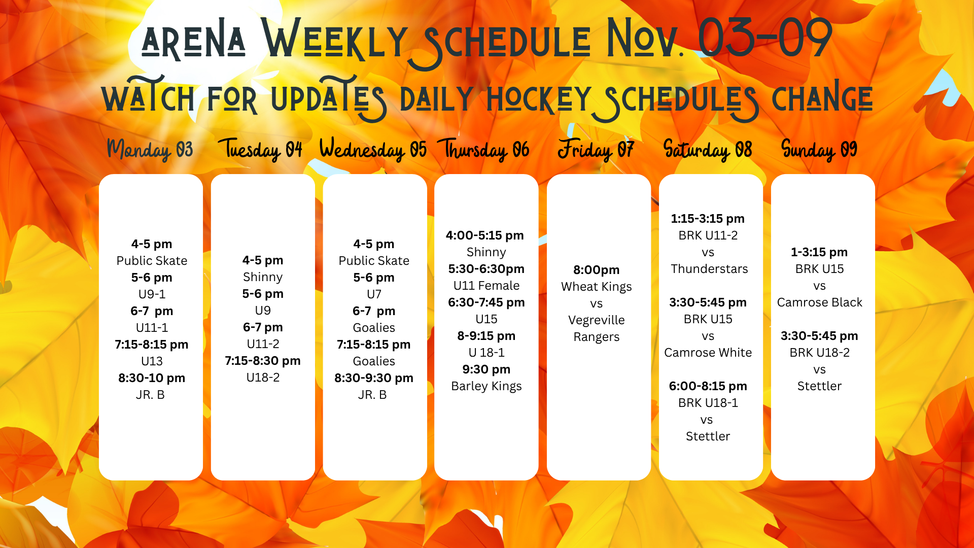 Killam Memorial Arena has hosted Hockey camps, officiating clinics and exhibition matches such as the CFCW Critters fundraisers and the Calgary Hitmen / Edmonton Ice teams. Minor Hockey also participates in hosting various tournaments and provincial playoffs, when provided the opportunity, and is looking forward to future events!