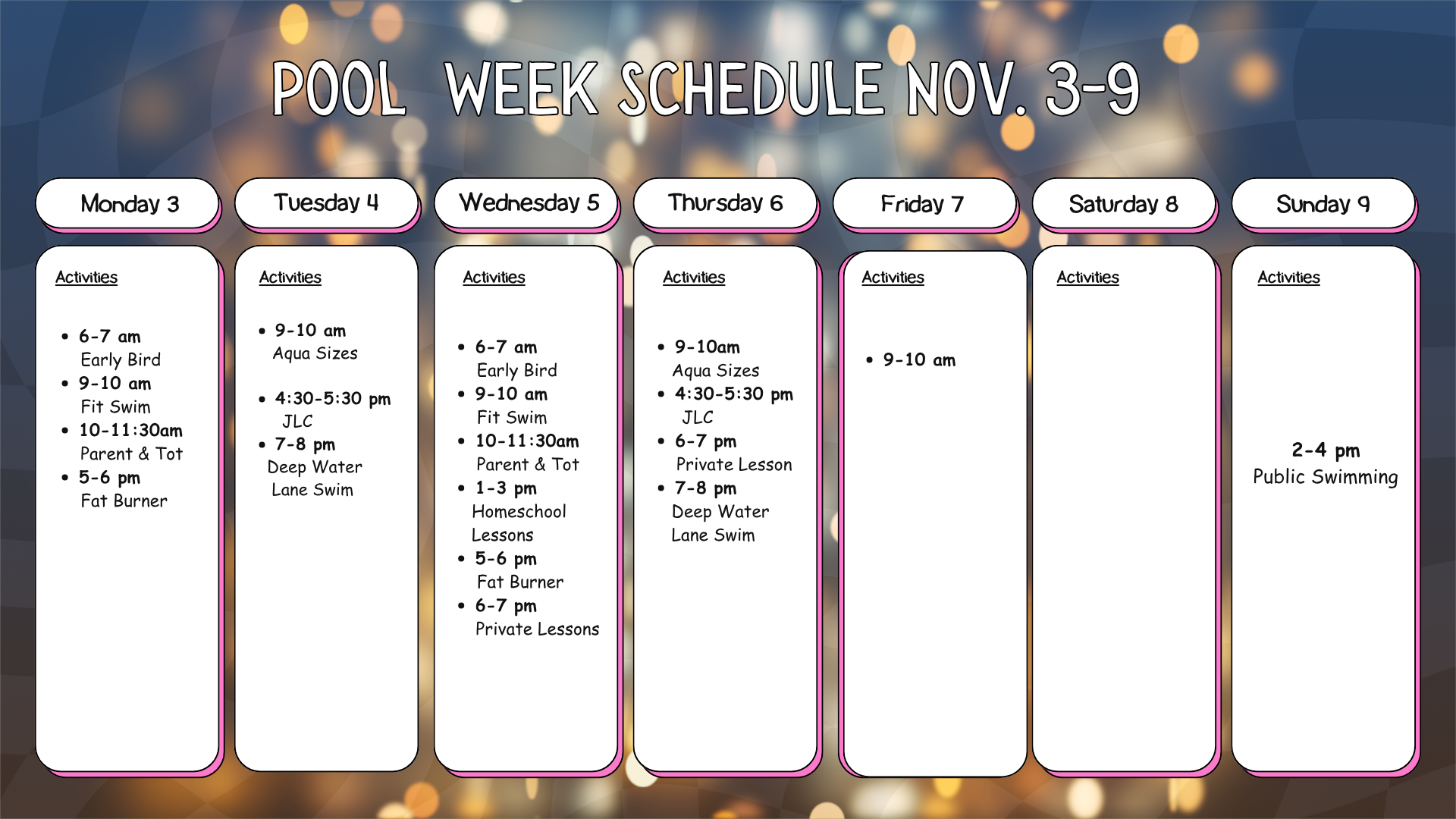 Nestled inside the Killam Agriplex facility is the Killam Regional Indoor Pool. Opened year round, this competition sized saltwater pool also has a zero-depth entry teach pool. Besides public swimming, there is a wide array of activities going on here. Swim lessons (public and private), adult lessons, school lessons, parent & tots groups, competitive swim club, aquatic fitness, fitness swim, lane swim and deep water workouts. The pool is also used for private bookings for therapeutic or physiotherapy treatments when recommended by health professionals. Once the workout is done, relax a bit in the hot tub to sooth those tired muscles. The Indoor Pool can also be rented for private functions such a birthday parties, family reunions or company events.